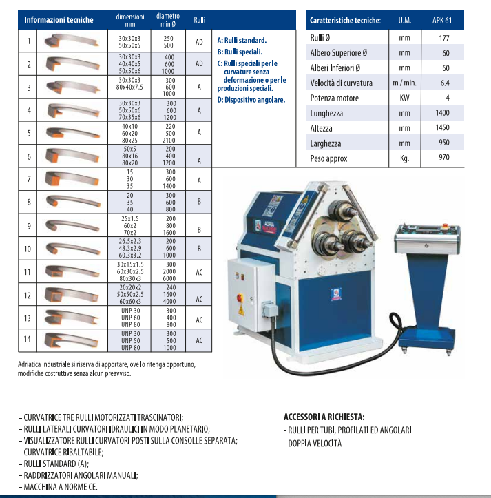 – n° 01 Curvatrice Adria Macchine modello APK 61 Nuova